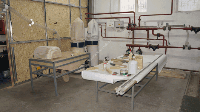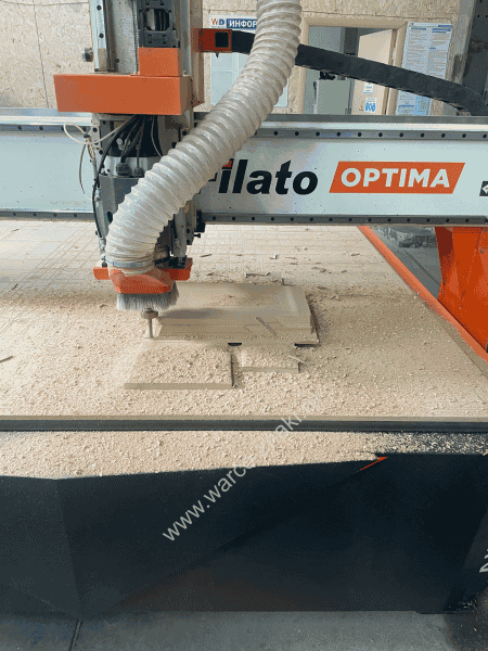 На фрезерном станке с ЧПУ послойно обрабатывается материал из мдф с последующей операцией ручной шлифовки и укрепления верхнего слоя матрицы эпоксидной смолой.
