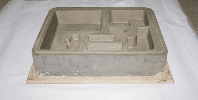 Для типового тиража изготавливается форма из мдф с пропиткой из эпоксидной смолы, способная выдержать 100-300 циклов вакуумной формовки.